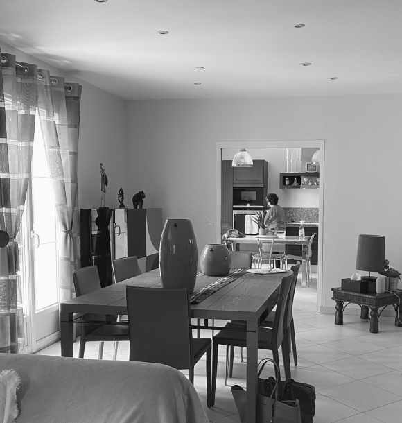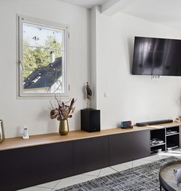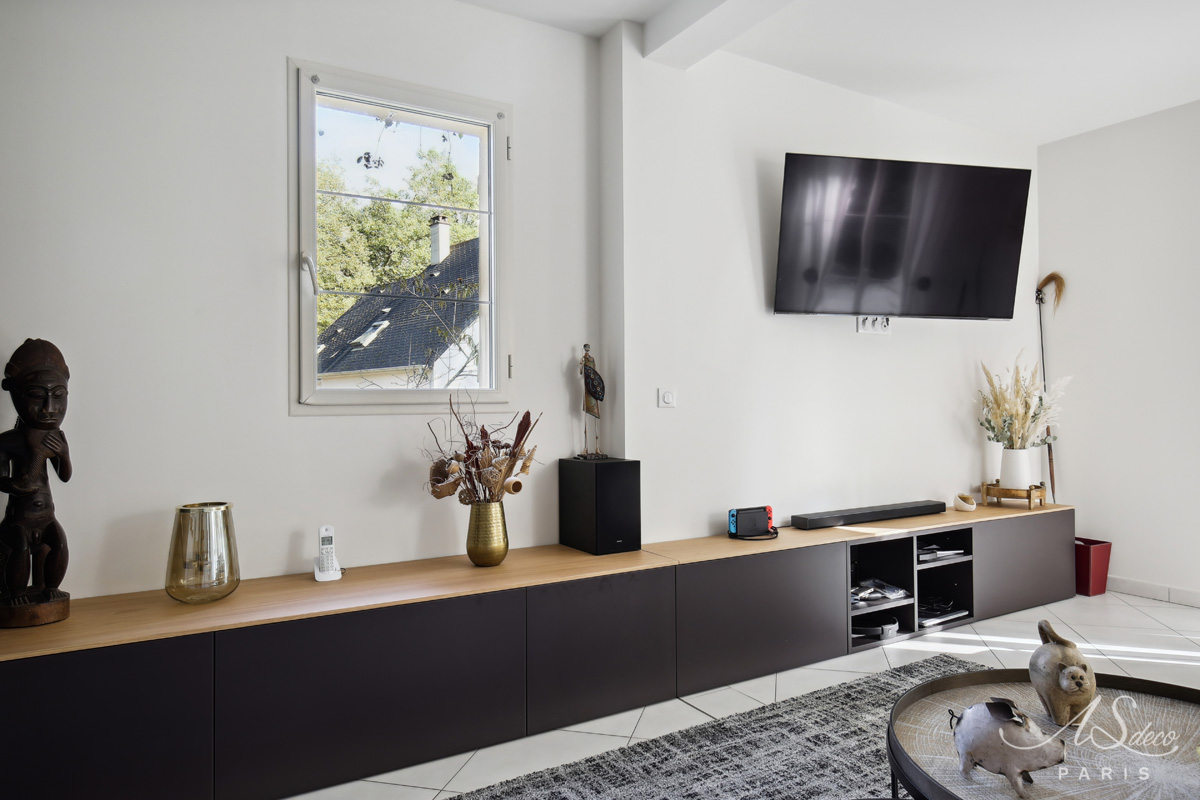 Dans le charmant village de Bouffémont, notre cliente Elodie souhaitait donner un nouveau souffle à son intérieur. Ce projet délicat a exigé de mêler le confort moderne à des touches ethniques chaleureuses, tout en préservant des pièces de mobilier chères à notre cliente.