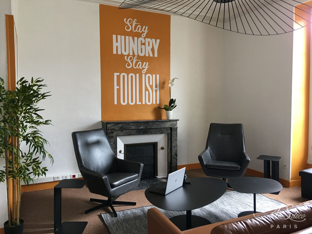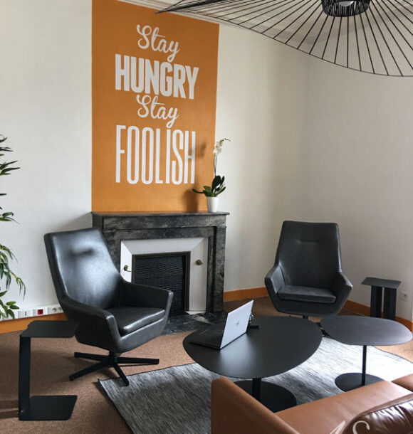 Nous avons accompagné la start-up parisienne Allo Media lors de son emménagement dans ses locaux au Mans. L’équipe composée de chercheurs en R&D avait besoin d’un espace convivial où réaliser des réunions informelles.