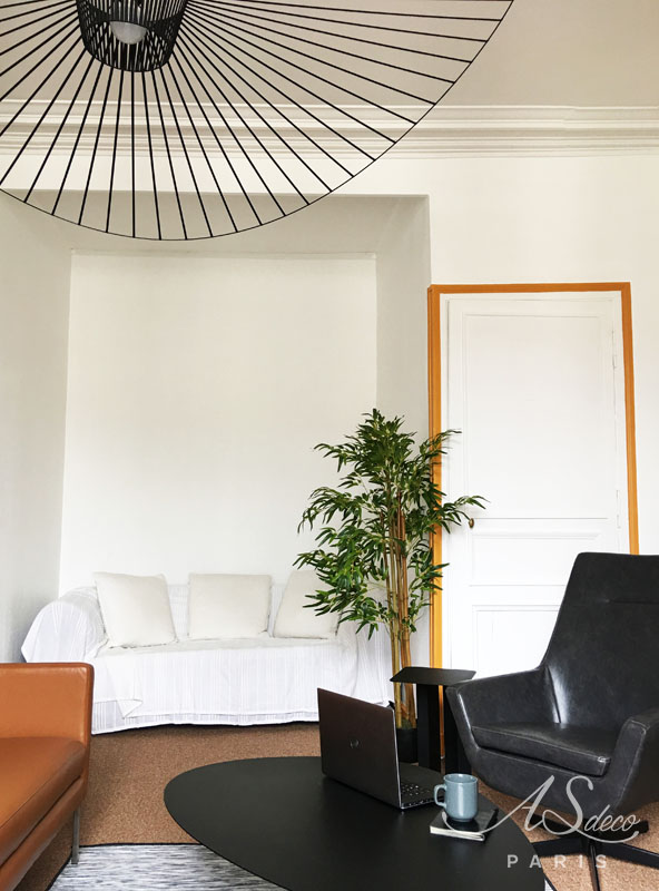 Nous avons pris le parti d’accentuer la décoration dans un style masculin avec des touches de noir et des matières brutes comme le cuir ou encore le métal. Quelques plantes sont venues composer le décor afin d’apporter un peu de douceur à cet espace.
