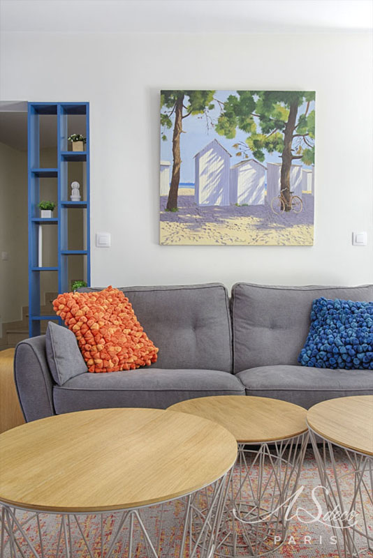 Grâce à notre prestation de visite conseil, nous avons accompagné Caroline dans la décoration de son séjour en harmonisant l’ensemble de la décoration sur la base des jolis tableaux qu’elle avait peint.