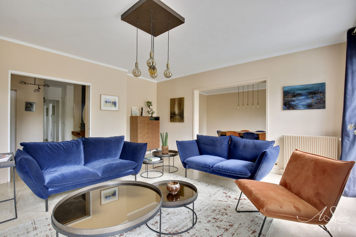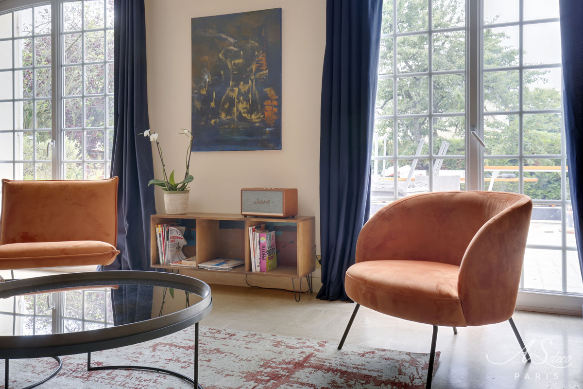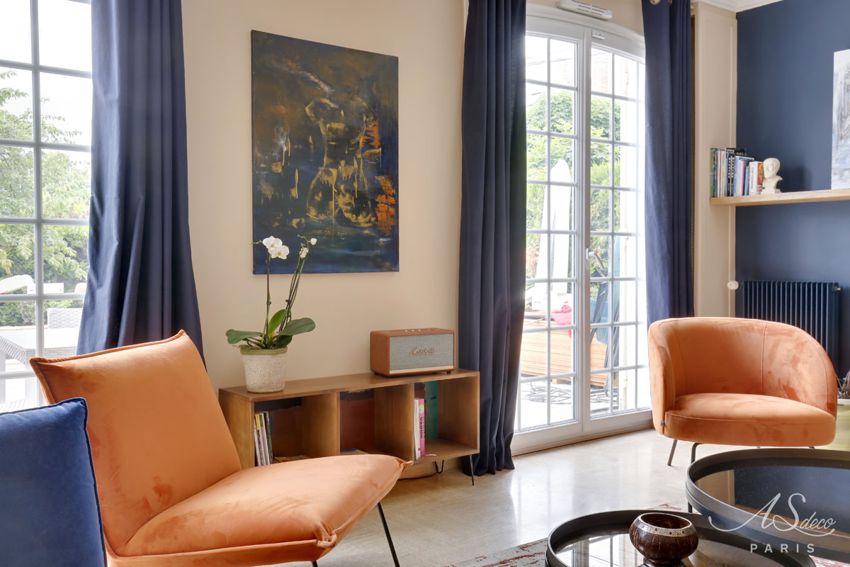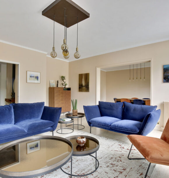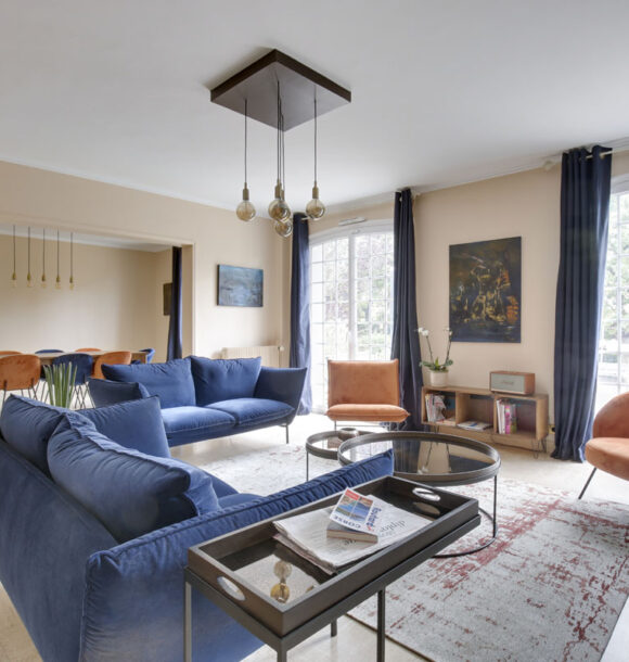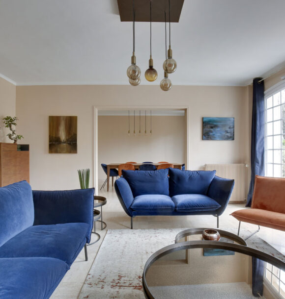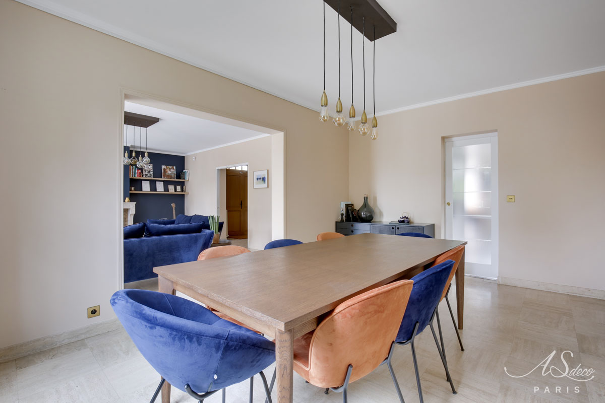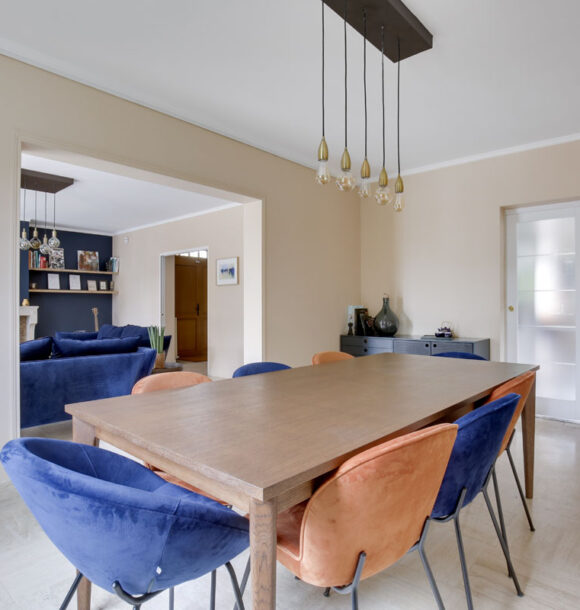 Grâce à notre prestation visite conseil, ce séjour a bénéficié d’un relooking total du sol au plafond. Nous avons revu intégralement la décoration afin de faire ressortir tout le potentiel du salon, de la salle à manger et de l’entrée.