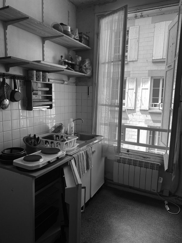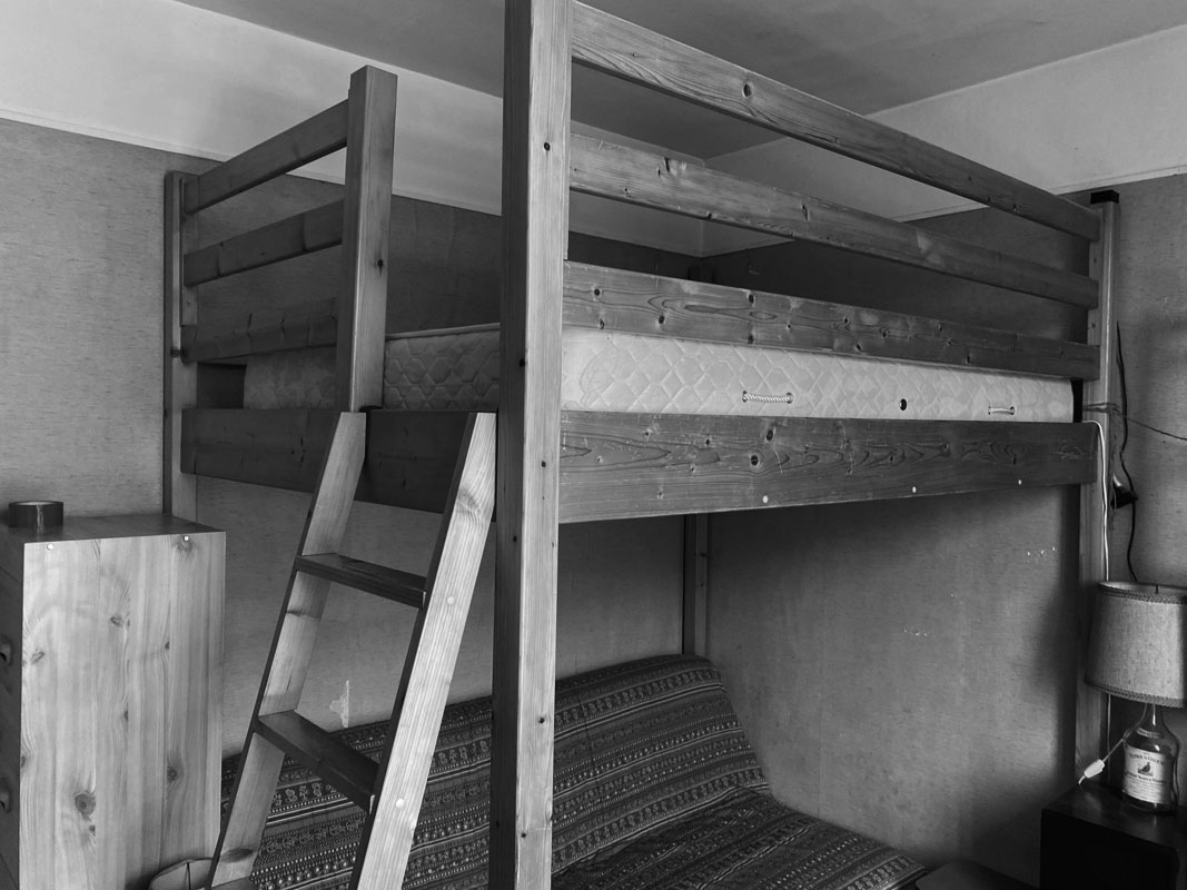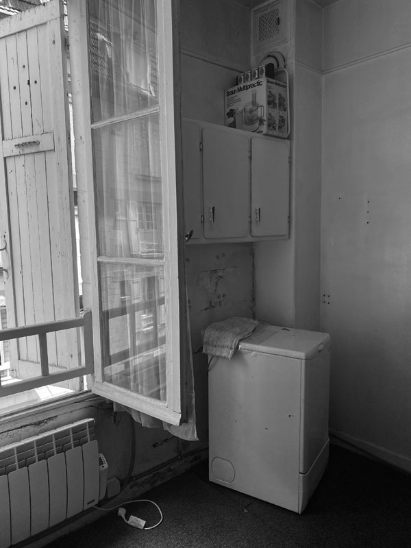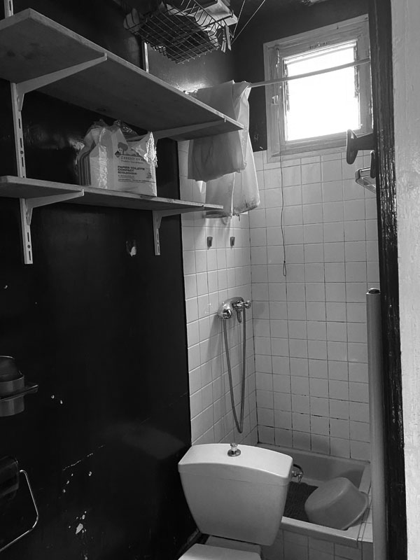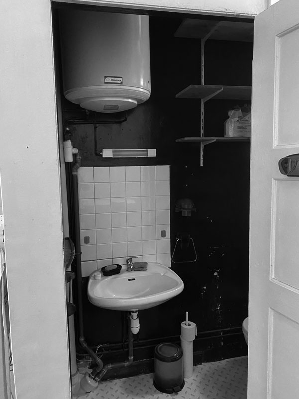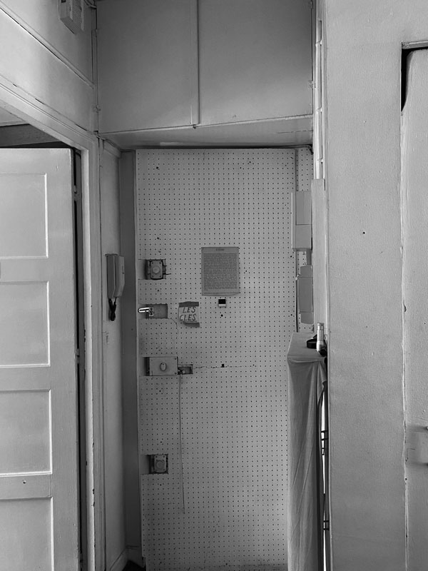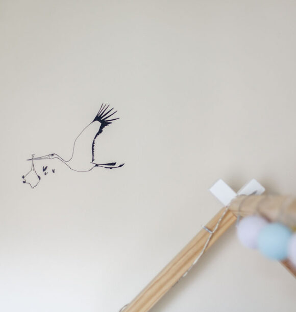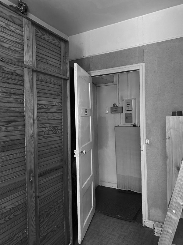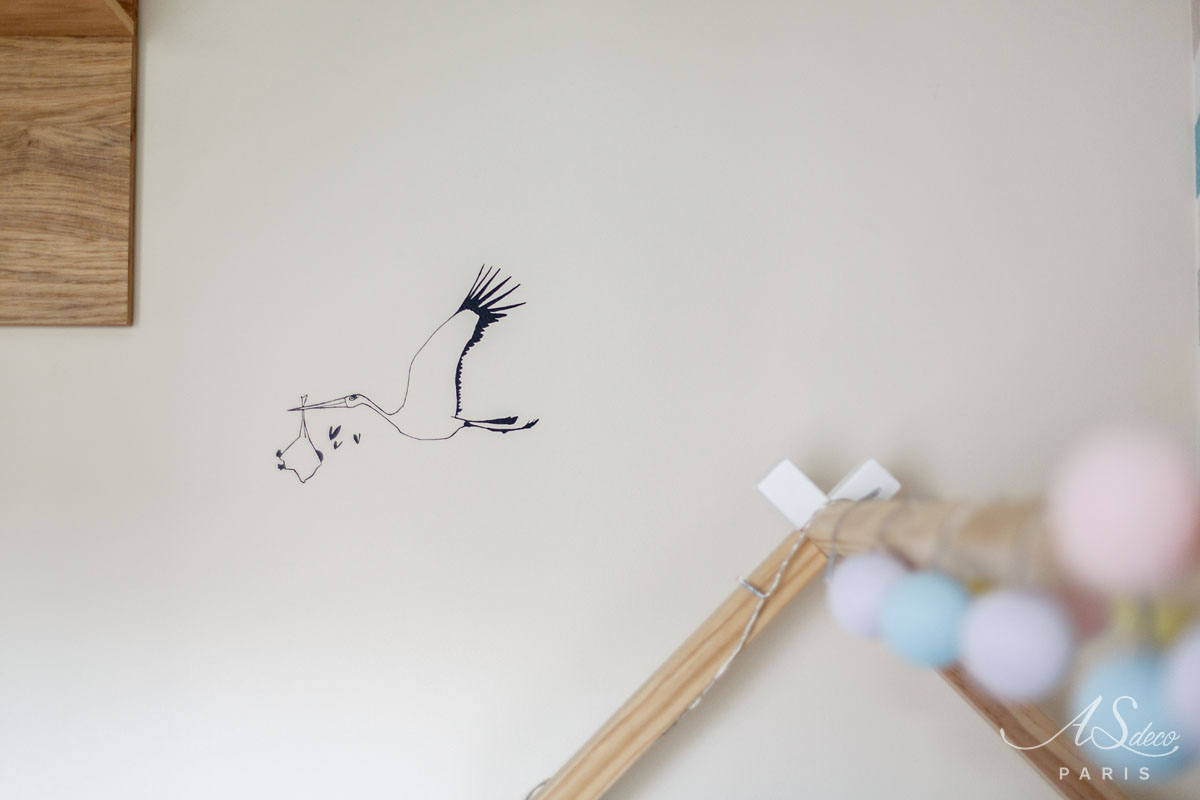 Notre choix de mobilier s’est porté sur des éléments au style raffiné et quelque peu art déco. Le papier-peint irisé de l’entrée associé à l’interrupteur vintage doré a donné le ton dès l’entrée dans la maison. Nous avons ensuite sélectionné une peinture bleue nuit pour mettre en valeur la cheminée, faisant ressortir le miroir et les étagères finition bois de part et d’autre.