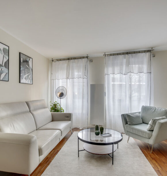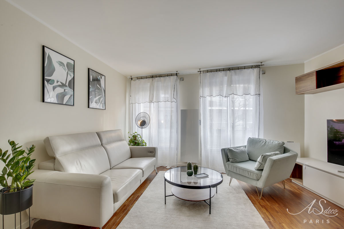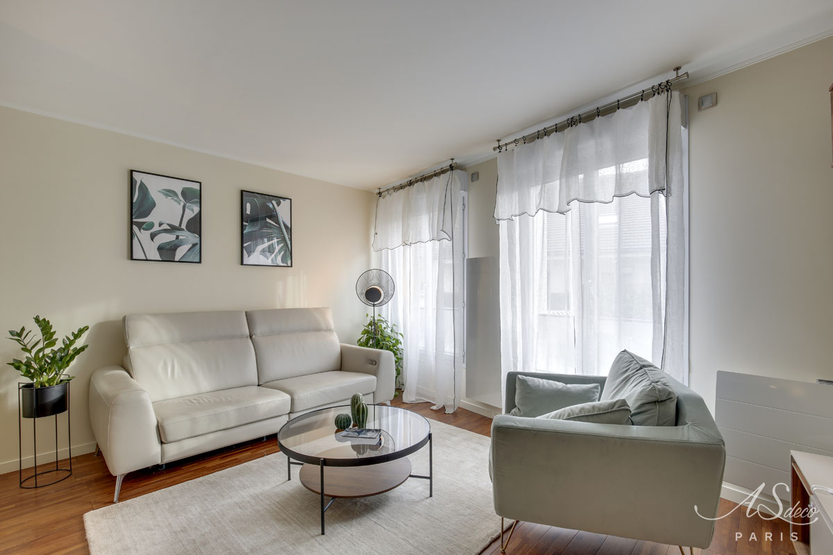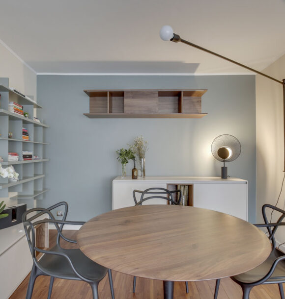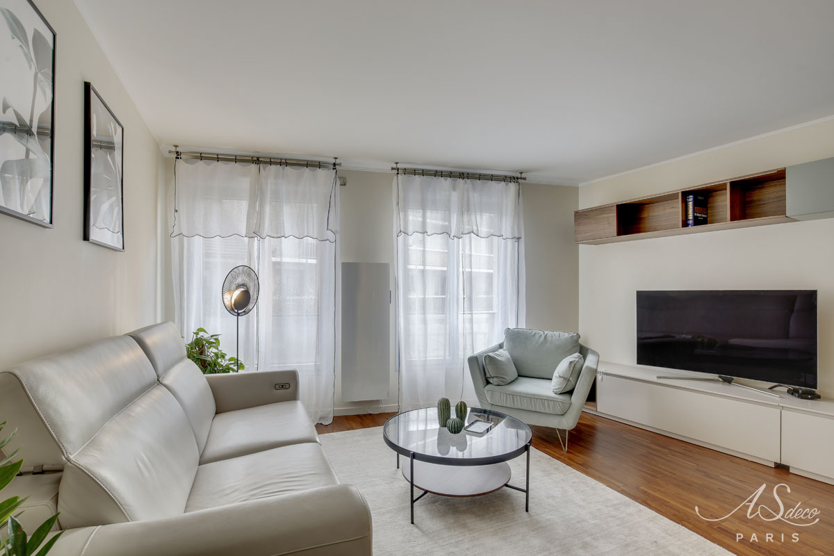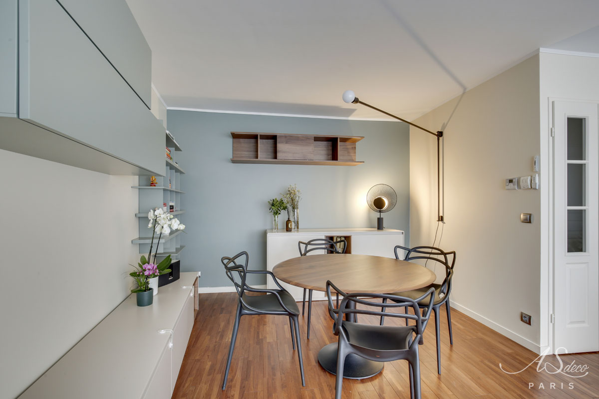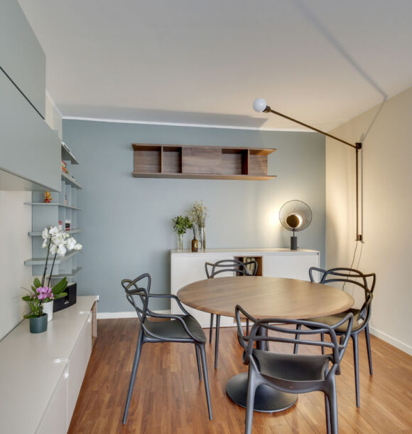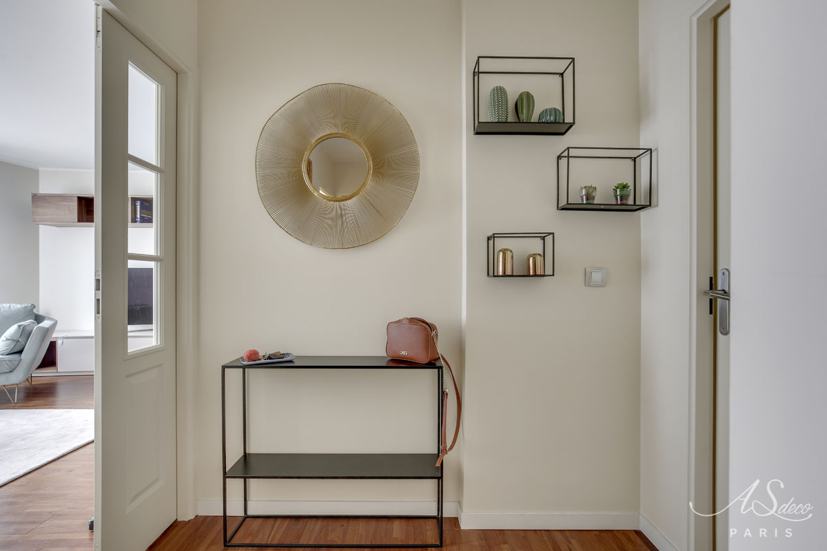 Grâce à notre prestation visite conseil, ce séjour a bénéficié d’un relooking total du sol au plafond. Nous avons revu intégralement la décoration afin de faire ressortir tout le potentiel du salon, de la salle à manger et de l’entrée.