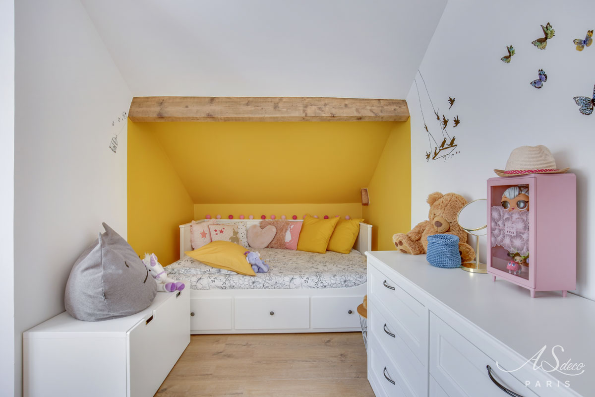 Nos clients, pour qui nous avions imaginé leur chambre parentale et chambre d’amis, avaient besoin de notre expertise pour décorer la chambre de leur petite fille.