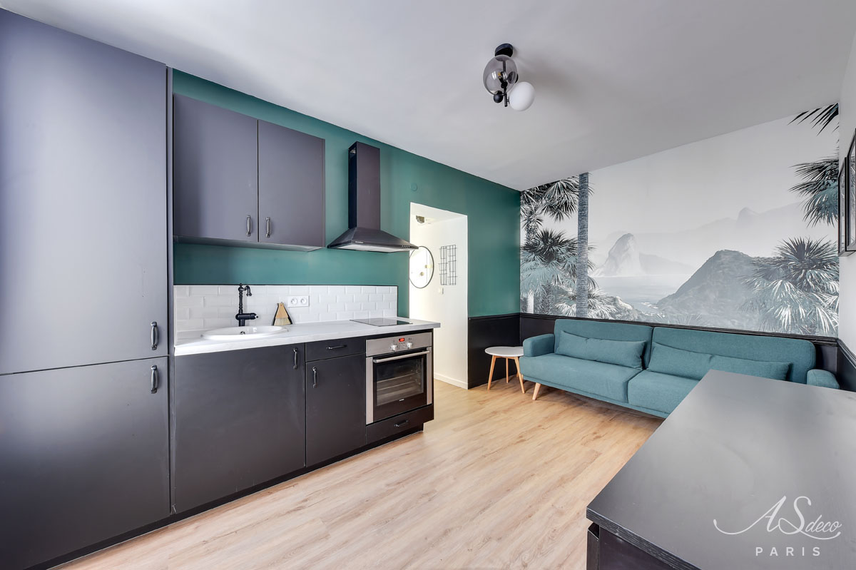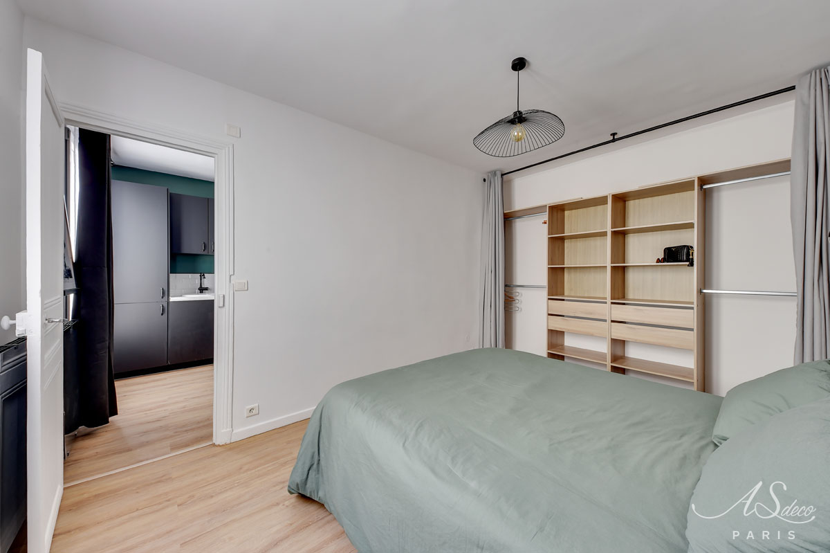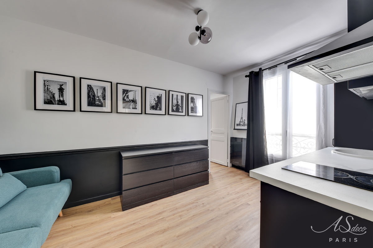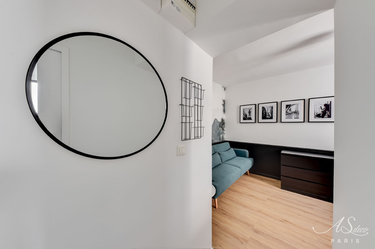 Niché au cœur du 19e arrondissement de Paris, cet appartement type F1 était resté dans son jus mais avait un potentiel détectable dès notre première visite. Notre client, investisseur immobilier, l’a reconnu également et c’est en moins d’un mois que nous avons remis l’ensemble du projet.