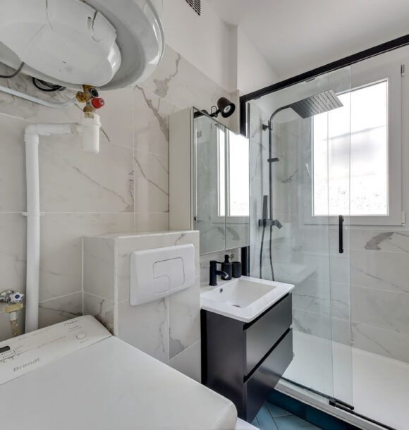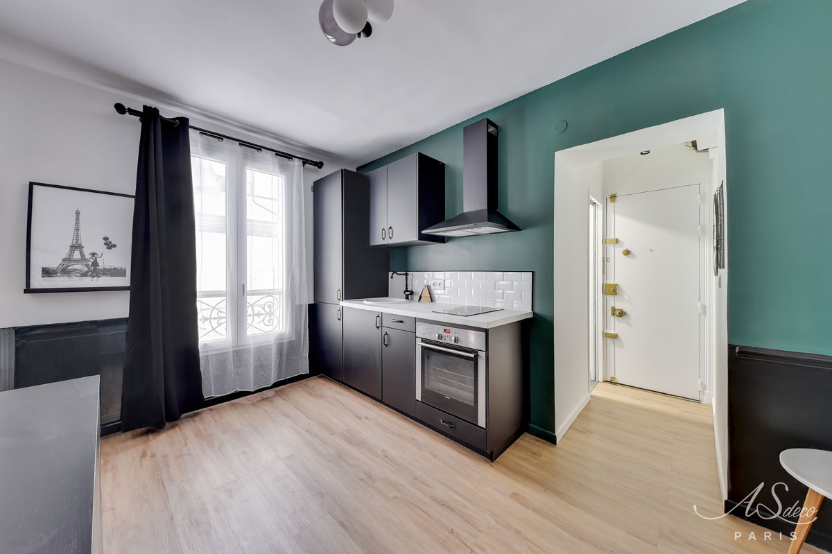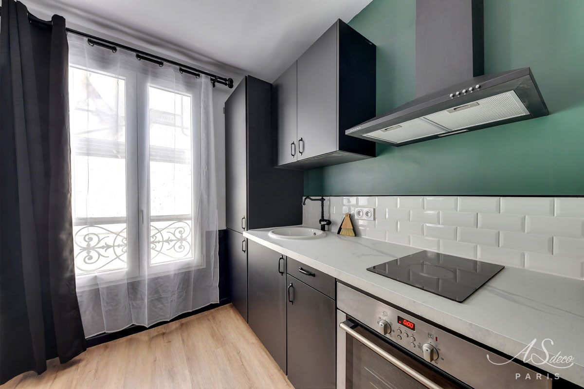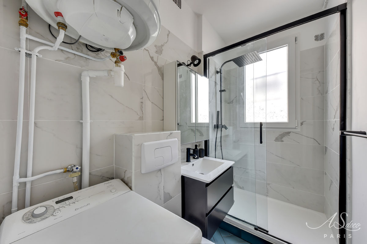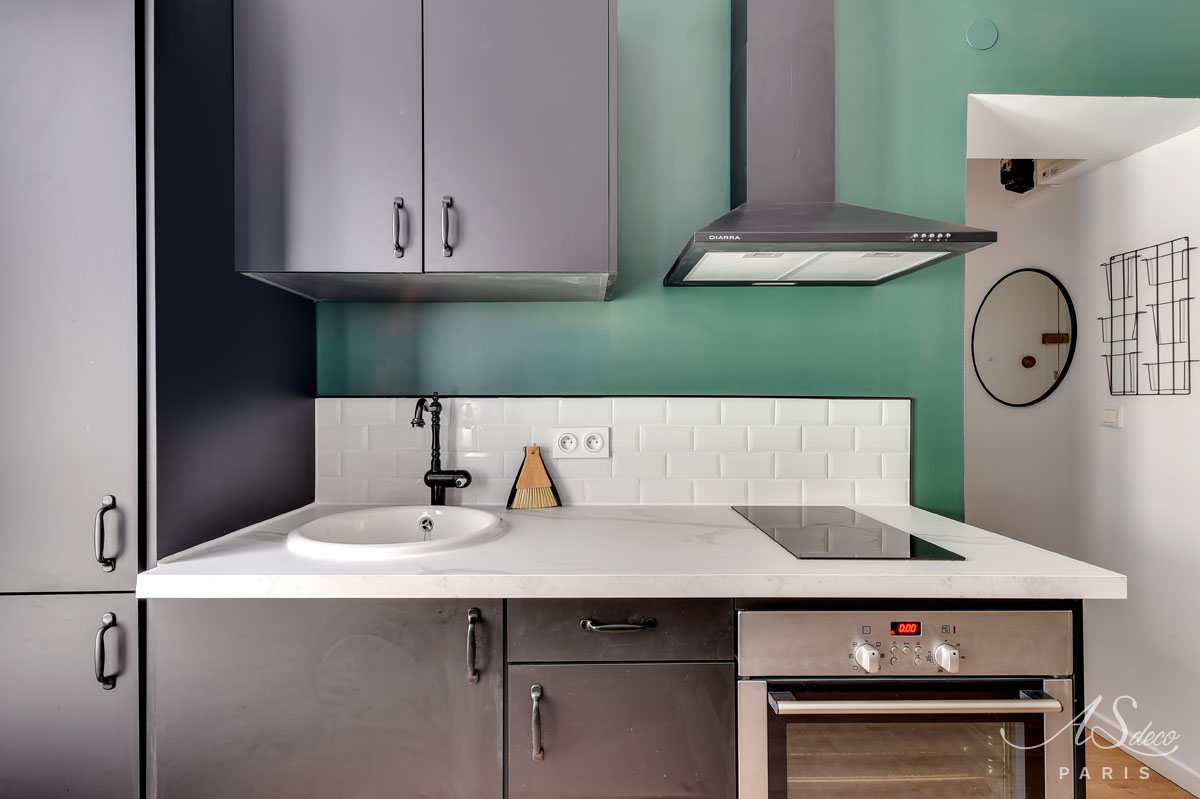 Niché au cœur du 19e arrondissement de Paris, cet appartement type F1 était resté dans son jus mais avait un potentiel détectable dès notre première visite. Notre client, investisseur immobilier, l’a reconnu également et c’est en moins d’un mois que nous avons remis l’ensemble du projet.